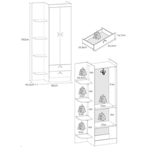 Dimensões do produto montado: Altura: 183cm | Largura: 85cm | Profundidade: 40cm *Você pode consultar as medidas detalhadas na imagem técnica do produto. *As cores do produto podem sofrer variações de tonalidade de acordo com as configurações do seu dispositivo.