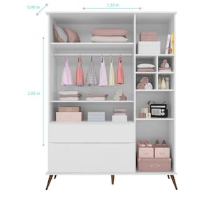 Com medidas de 205 cm de altura, 133 cm de largura e 46 cm de profundidade, este guarda-roupas é espaçoso o suficiente para atender às necessidades de armazenamento do seu filho, enquanto seu design elegante complementa o ambiente. Proporcione organização e beleza ao quarto do seu filho com o Guarda Roupas Infantil 3 Portas 2 Gavetas Valência, a escolha perfeita para criar um espaço funcional e encantador. Transforme o quarto do seu filho com esta incrível peça de mobiliário.
