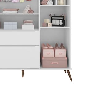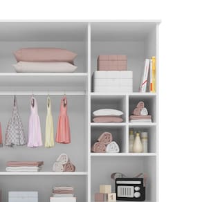 Você tem a liberdade de escolher entre três cores elegantes: Branco Acetinado, Rose Acetinado e Cinza Acetinado, permitindo que o guarda-roupas se adapte perfeitamente à decoração do quarto do seu filho. Os pés em madeira conferem estabilidade e um toque de aconchego ao móvel.