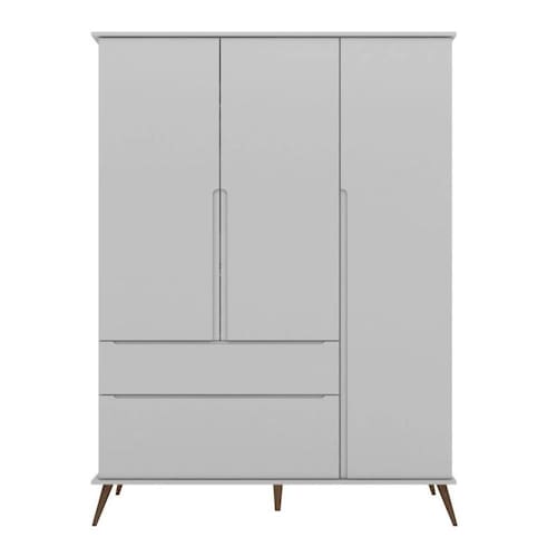 Construído com 100% MDF, este guarda-roupas é robusto e durável, pronto para resistir ao uso diário. Com três portas espaçosas e duas gavetas equipadas com corrediças telescópicas, oferece amplo espaço de armazenamento para roupas, calçados e acessórios. Além disso, possui um prático cabideiro para pendurar roupas.