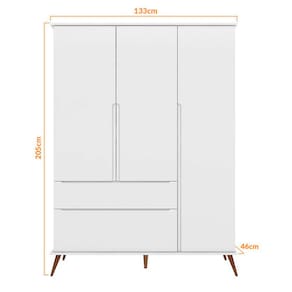 Com medidas de 205 cm de altura, 133 cm de largura e 46 cm de profundidade, este guarda-roupas é espaçoso o suficiente para atender às necessidades de armazenamento do seu filho, enquanto seu design elegante complementa o ambiente. Proporcione organização e beleza ao quarto do seu filho com o Guarda Roupas Infantil 3 Portas 2 Gavetas Valência, a escolha perfeita para criar um espaço funcional e encantador. Transforme o quarto do seu filho com esta incrível peça de mobiliário.