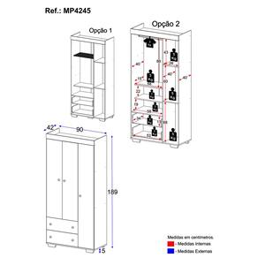 Dimensões do produto montado: Altura: 189cm | Largura: 90cm | Profundidade: 42cm *Você pode consultar as medidas detalhadas na imagem técnica do produto.