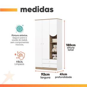 Guarda Roupas Infantil Para Quarto Bebê 3 Portas 2 Gavetas Magia Branco / Madeirado