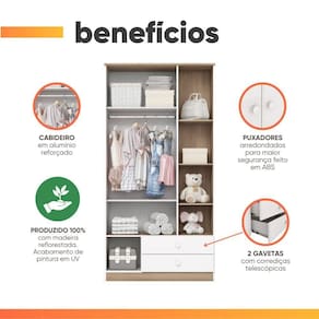 ITENS INCLUSOS: 1 Guarda Roupas Infantil, 1 Manual de Montagem, 1 Kit Parafusos