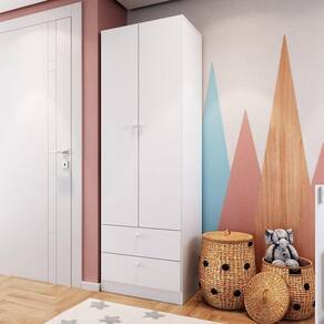 O Guarda Roupas 02 Portas e 02 Gavetas Branco Linha Aconchego da Completa Móveis é versátil, prática e elegante, com características que a destacam. Ideal para o quarto do seu bebê. Gavetas e prateleiras que facilitam e otimizam o espaço e aconchego para o ambiente, assim, acomodando e organizando as roupinhas e acessórios do dia a dia. Cabideiro incluso. Produto em MDP com corrediças metálicas e puxadores plásticos.
