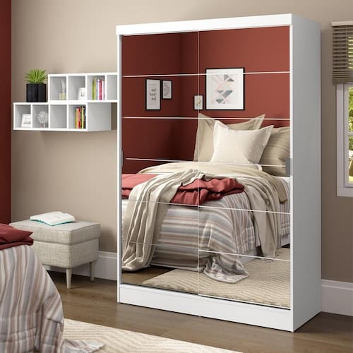Guarda-Roupas Luke Branco 2 Portas Espelho Correr Madesa