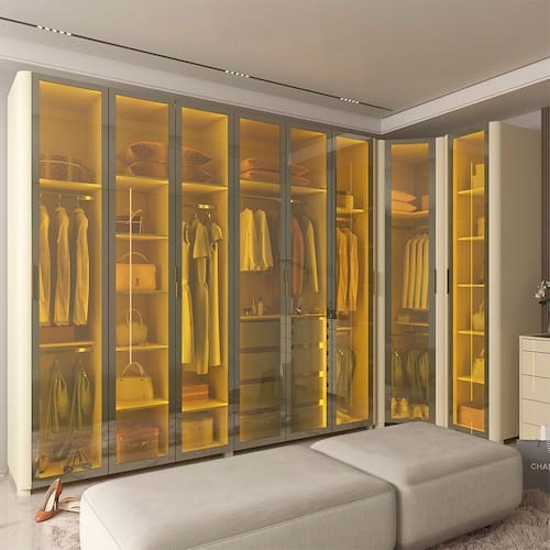 O Modulado INNOVA 8 Portas é sinônimo de sofisticação e versatilidade. Com design inteligente, se adapta perfeitamente ao ambiente. Seus módulos são independentes e podem ser encostados conforme seu layout, aproveitando cada centímetro disponível. Fabricado em 100% MDF, portas em vidro reflecta com moldura em alumínio, iluminação LED quente nas laterais e divisórias, puxadores metálicos delicados, gavetas com corrediças telescópicas e cantos curvos que valorizam o visual. Uma combinação de beleza e funcionalidade para quem busca um móvel moderno, elegante e adaptável! Acabamento da Prateleira: Pintura UV Escala de Brilho da Prateleira: Brilhante Possui Cabideiros: Sim Acabamento da Gaveta: Pintura UV Escala de Brilho da Gaveta: Brilhante Possui Organizador de Gaveta: Não Acabamento da Porta: Cristal Escala de Brilho da Porta: Brilhante Material do Puxador da Porta: Alumínio Acabamento dos Pés: Pintura Altura dos Pés: 5 cm Altura Máxima dos Pés: 5.0000 Ambiente Principal: Quarto codigo_ean: 7900288228475 Complexidade da Montagem: Alta: deve ser montado por um montador especializado Cor: Off White Cor da Porta: Bege Cor do Produto: Off White Cor Flex: Não Cor Interna: Off White Escala de Brilho: Brilhante Espessura da Estrutura (mm): 15 mm Espessura das Portas (mm): 3 mm Espessura das Prateleiras (mm): 15 mm Espessura do Fundo (mm): 3 mm Espessura do Fundo das Gavetas (mm): 3 mm Gaveta com Chave: Não Guarda-Roupa Suporta Até (kg): 220 kg Informações Complementares: Iluminação por fita LED. Itens Inclusos: 1 Guarda-Roupas, Kit Ferragem e Manual de Montagem Linha ou Coleção: Innova Manual de Especificação Técnica: https://product-hub-prd.madeiramadeira.com.br/537204906/documents/c37bb90d-c4bc-4bb9-8cde-ba9b95a7969031985495501757676440122.pdf Manual de Montagem e Instalação: https://product-hub-prd.madeiramadeira.com.br/537204906/documents/a821d6c5-3040-48f7-a931-af2db96faab4319854755017576764213343.pdf Marca: Gelius Móveis Material da Gaveta: MDF Material da Porta: Vidro Material da Prateleira: MDF Material dos Pés: Madeira Maciça Material Principal: MDF modular: Sim Montagem Flex: Não Necessita Montagem: Sim Nicho com Cabideiro: Não Origem do Produto: Nacional Peso: 373 kg Peso Máximo por Gaveta: 5 kg Peso Máximo por Prateleira: 5 kg Possui Calceiros: 03 Possui Capelinha: Não Possui Espaço para Vestidos Longos: Sim Possui Espelho: Não Possui Espelho Interno: Não Possui Ganchos: Não Possui iluminação: Sim Possui Nichos: Sim Possui Painel de TV: Não Possui Penteadeira: Não Possui Pés: 17 Possui Portas: Sim Possui Prateleiras: Sim Possui Sapateira: Não Produto Montado: Sim Quantidade de Cabideiros: 06 Cabideiros Quantidade de Gavetas: 04 Gavetas Quantidade de Prateleiras: 18 Prateleiras Recomendações de Uso, Manutenção e Limpeza: A limpeza do produto deve ser feita por meio do uso de um pano, umedecido com água, e um pano seco. É importante para fazer a limpeza do móvel nunca utilizar produtos químicos ou abrasivos. Para conservar o padrão de qualidade dos produtos Gelius, nunca arraste um móvel se este estiver cheio. Nunca puxe o móvel de frente para você, pois ele pode balançar e provocar acidentes. Sapatas Niveladoras: Não Sistema de Montagem: Convencional: parafusos, pregos, cavilhas, etc. Suporta Até (kg): 220 kg Tipo de Corrediça da Gaveta: Metálica Telescópica Tipo de Dobradiça/Corrediça da Porta: Metálica Tipo de Gaveta: Interna Tipo de Guarda-Roupa: Modulado Tipo de Madeira Maciça dos Pés: Pinus Tipo de Puxador da Gaveta: Não Possui Tipo de Puxador da Porta: Externo