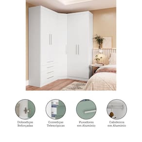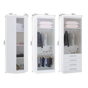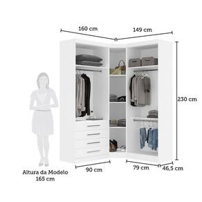 Ambiente composto por: ? 1 Guarda Roupa Modulado 79cm 2 Portas Alpes Luciane Móveis 230 x 79 x 46,5 -Alt x Larg x Prof - cm- ? 1 Guarda Roupa de Canto Diagonal Modulado 70cm 1 Porta Alpes Luciane Móveis 230 x 70 x 70 -Alt x Larg x Prof - cm- ? 1 Guarda Roupa Modulado 90cm 2 Portas e 4 Gavetas Alpes Luciane Móveis 230 x 90 x 46,5 -Alt x Larg x Prof - cm-