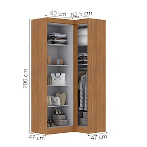 Transforme seu ambiente com o Guarda Roupas Modulado de Canto, que oferece versatilidade e organização para o seu espaço. Com design moderno e inteligente, ele se encaixa perfeitamente em cantos, otimizando a área disponível sem comprometer a circulação. Possui cabideiro resistente para manter as roupas sempre bem penduradas e sem amassar, além de prateleiras internas estrategicamente posicionadas para melhor aproveitamento do espaço. Um móvel versátil, prático e espaçoso, pensado para facilitar o dia a dia e manter tudo em ordem com estilo.
