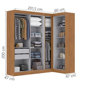 Transforme seu ambiente com o Guarda Roupas Modulado de Canto, que oferece versatilidade e organização para o seu espaço. Composto por diversas prateleiras internas estrategicamente distribuídas, ele permite organizar roupas, acessórios, calçados e itens pessoais de maneira prática e eficiente. Os cabideiros resistentes proporcionam maior cuidado com as peças mais delicadas, mantendo-as esticadas e bem armazenadas. O módulo ainda conta com duas gavetas espaçosas, ideais para itens menores ou de uso frequente. Suas sete portas facilitam o acesso e oferecem uma visualização completa do interior, garantindo funcionalidade e organização no ambiente. É a união perfeita entre design inteligente e praticidade no dia a dia.
