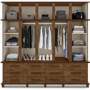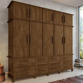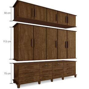Estrutura: : Produzido em MDF e MDPAcabamento: : Pintura U.V. (Ultra Violeta) resistente a risco nos painéis e PU (poliuretano) nas bordas soft das portas e gavetas.Pés: : 10 Pés de madeira reflorestada.Gavetas: : 12 com corrediça metálica 450 mm. Portas: : 10 portas com puxadoresCabideiro: : Em AlumínioExtras: : Divisões internas na cor bege brilhante propiciando leveza ao ambiente. Maior profundidade da categoria Ambiente: : QuartoLargura: : 244,0 cmAltura: : 244,0 cmProfundidade: : 56,5 cmPeso: : 256,9 KgGarantia: : 03 mesesInformações Sobre Montagem: : Não possuímos serviço de montagem.