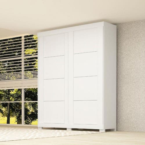 Características: Estrutura em MDF 12mm Pintura interna linho 2 Portas de correr 2 Gavetas com divisórias Corrediças telescópicas Cabideiro em alumínio Pés inclusos