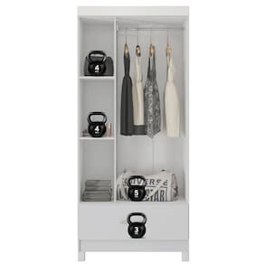 MEDIDAS:: A = 182 cm L = 75 cm P = 47 cm | MEDIDAS DOS PÉS:: A = 10 cm L = 4,7 cm P = 4,7 cm | PESO:: 40 kg | PESO SUPORTADO:: 16 kg | PRATELEIRAS SUPORTAM ATÉ:: 4 kg | GAVETAS SUPORTAM ATÉ:: 3 kg | CABIDEIROS SUPORTAM ATÉ:: 5 kg | MODELO:: PRINCE | MARCA:: Demóbile | COR:: Branco | ACABAMENTO:: Semi brilho | MATERIAL DA ESTRUTURA:: MDP | ESPESSURA DO MATERIAL DA ESTRUTURA:: 15mm | PORTAS:: 3 | TIPO DE PORTA:: Bater | DOBRADIÇAS:: Metálicas | GAVETAS:: 1 | CORREDIÇAS:: Metálicas | PRATELEIRAS:: 2 | CABIDEIROS:: 1 | MATERIAL DO CABIDEIRO:: Madeira, revestido | PUXADORES:: 4 | MATERIAL DOS PUXADORES:: ABS | QUANTIDADE DE PÉS:: 4 | MATERIAL DOS PÉS:: PVC | GARANTIA:: 3 Meses | ITENS INCLUSOS:: 1 Armário Multiuso, 1 Manual de montagem, 1 Kit Parafusos. | INSTRUÇOES E CUIDADOS:: Para maior durabilidade, recomendável que a limpeza dos móveis seja feita com pano limpo e levemente umedecido em água e sabão neutro. Em seguida, deverá ser passado um pano limpo e seco. Cor: Branco