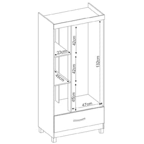 O Guarda Roupas Solteiro Prince é a resposta para todos os seus desejos de estilo e funcionalidade. Conta com 3 portas e amplo espaço de armazenamento para melhor organização, 1 gaveta, cabideiro resistente, e boa divisão interna para guardar suas roupas, sapatos, acessórios e muito mais. Seus pés são feitos com material resistente, que não agride o piso. Confeccionado com materiais de qualidade garantindo maior durabilidade e resistência.