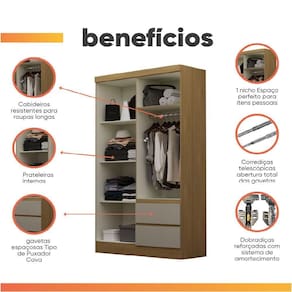 O Guarda Roupas Solteiro Malta foi desenvolvido para trazer praticidade e estilo ao seu quarto. Com cabideiro resistente para roupas longas, 3 prateleiras internas, 2 gavetas espaçosas, ele garante organização no dia a dia sem abrir mão de um design moderno e elegante. Uma escolha inteligente para quem busca funcionalidade e beleza em um único móvel.