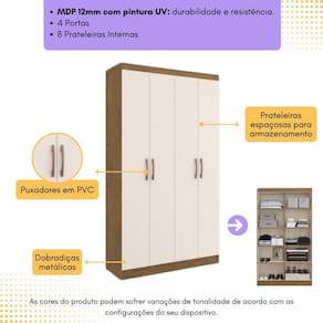 Guarda-Roupas Solteiro 4 Portas Multimóveis CR35216 - Off White
