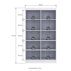 Altura: 175cm | Largura: 92cm | Profundidade: 32cm