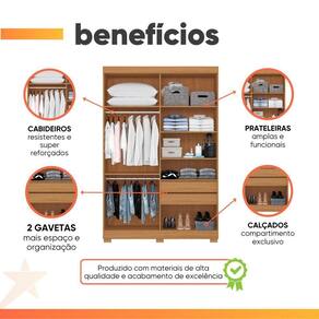 DIFERENCIAL: Puxadores em MDF resistentes / Corrediças telescópicas metálicas / Pintura UV de alta qualidade / Amplas prateleiras / Cabideiros em alumínio oblongos