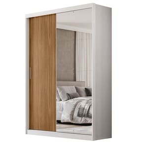 Guarda Roupas Solteiro com Espelho 2 Portas de Correr 4 Gavetas Riva Flex - Off White | Marrom