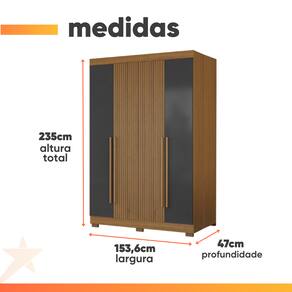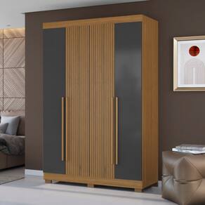 Guarda Roupas Solteiro Detalhe Ripado 3D Com 4 Portas 2 Gavetas Creta - Grafite | Marrom
