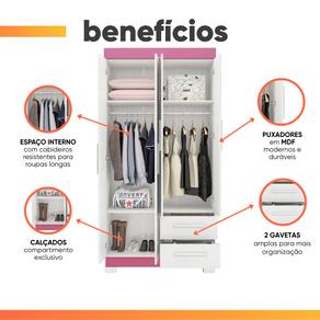 ITENS INCLUSOS: 1 Guarda Roupa, 1 Manual de montagem, 1 Kit Parafusos.