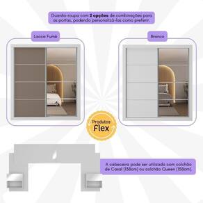Nome do Produto no Fornecedor: Guarda-Roupas Casal e Cabeceira com 2 Mesas de Cabeceira e Espelhos Multimóveis MP4328 Branco