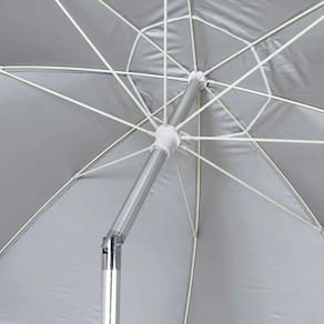 "O guarda-sol MOR Alumínio 2,60m é feito em tecido 100% poliéster com dupla camada de silver coating, o que proporciona uma maior proteção contra os raios solares. Esse guarda-sol possui haste articulável construida em alumínio escovado, o que deixa o material mais leve e durável, já que não enferruja, mesmo em regiões litorâneas.