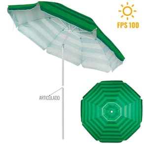 Como diferencial, sua haste em alumínio polido é articulável e fácil de manusear, proporcionando a você a opção de direcionar o seu Guarda-Sol na posição que desejar, além disso, seu material ainda a torna mais leve e durável já que não enferruja mesmo nas regiões litorâneas. Possui varetas de fibra de vidro reforçadas e uma saída de ar no topo que auxilia na sua estabilidade no chão e para facilitar seu armazenamento e transporte, acompanha prática sacola. Com 2,40m de diâmetro e haste de 2,30m de comprimento o Guarda-Sol Alumínio apresenta estampa colorida em tons de azul e verde para alegrar a sua área de lazer.