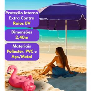 Guarda-Sol Gigante 2,40m Anti UV para Praia e Piscina com Respiro e Alta Estabilidade Azul
