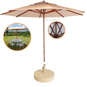 Leve mais charme, conforto e proteção para seus momentos ao ar livre com o Ombrelone Guarda-Sol de Madeira com 3,00 metros de diâmetro + Base de Concreto 40kg com Suporte de Fixação.