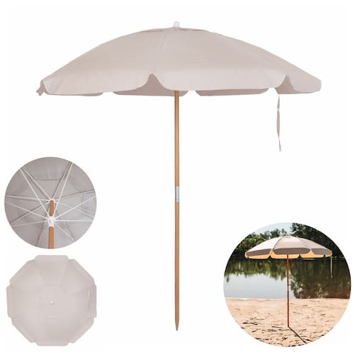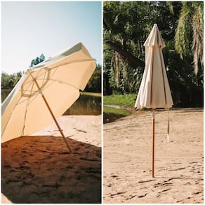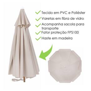 Guarda Sol Ombrelone Bagum 2 Metros Madeira Reforçado Bege - 3839 Mor Código: 003839 Marca: Mor Indispensável para quem quer proteger sua família sem abrir mão da praticidade, o Guarda-Sol Alumínio Bagum 2m Mor será seu maior aliado no verão. Para te acompanhar durante a estação do sol. Fácil de montar, Garante sua resistência e durabilidade, além de saída de ar que intensifica a estabilidade do produto na areia. É confeccionado em tecido 70% PVC (bagum) e 30% poliéster com FPS 100, proporcionando total proteção contra os raios solares. Com 2m de diâmetro e haste com 2m de comprimento, acompanha sacola para facilitar seu deslocamento.