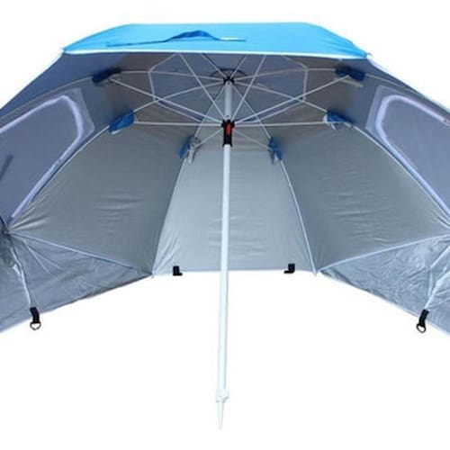 Guarda Sol/Paravento 2M Uv50 da marca Klimber. Este produto possui um diâmetro de 200 cm, peso bruto de 2,7 kg, altura de 205 cm e largura de 200 cm. O sistema de acionamento é manual e a forma é redonda. A cor é azul e o material é metal. Possui garantia de 3 meses e características do tecido com UPF + 50. Perfeito para aproveitar um dia de sol na praia com proteção. Marca: Brazil Home Living