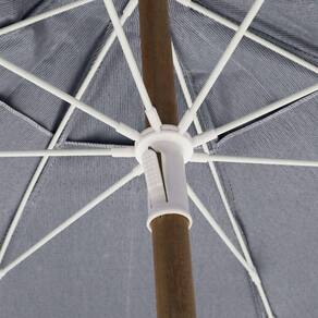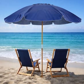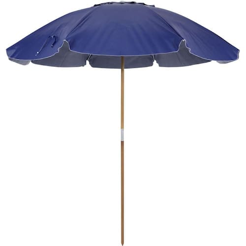 Especificações Envergadura: 2,40 metros Cobertura: Bagum Reforçado Haste: Madeira Natural Varetas: Fibra de Vidro FPS: 100 Itens Inclusos Guarda-Sol Caioba em Bagum e Haste de Madeira 2,40m Azul Marinho Bel Perguntas Frequentes (FAQ) Pergunta: Qual o nível de proteção solar do guarda-sol?