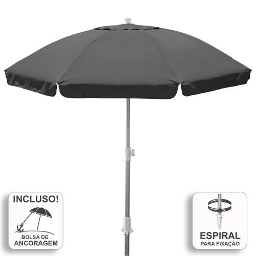 Guarda-Sol Zaka Alumínio 2.0 metros Cinza Reforçado com Espiral