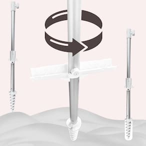 DICA: Colocar um pouco de água no entorno, após fixar a haste na areia, ajuda a reforçar a fixação.