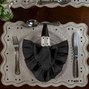 Contém: 2 Guardanapos Tamanho: 43 x 43 cm Cor: Preto Material: Tricoline Detalhes: Acabamento em babado Forma: Quadrado Estampa frente: Tricoline Liso Estampa verso: Tricoline Liso