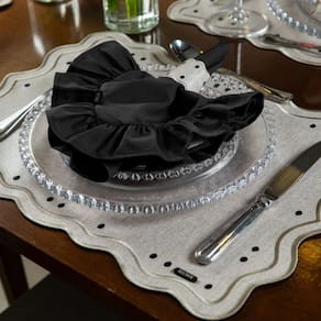 O Guardanapo Babado na cor verde bálsamo é a escolha perfeita para composições que transmitem serenidade e sofisticação. Sua tonalidade suave inspira leveza e harmonia, ideal para mesas postas que valorizam um toque natural e acolhedor. Ideal para lojistas que desejam enriquecer seu portfólio com as últimas tendências de decoração.