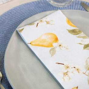Guardanapo Copa E Cia 4 Peças Home 45x45cm Estampado Pêras Guardanapo Copa e Cia 4 Peças Home 45X45cm Estampado Pêras - A linha de Guardanapos Home Copa&Cia é feita de 100% algodão, oferecendo um toque suave e macio. Disponível em uma variedade de cores e estampas, esses guardanapos são essenciais para a decoração da mesa posta. São duráveis, fáceis de lavar e podem ser combinados com diferentes acessórios. Além disso, são versáteis, podendo ser utilizados de várias maneiras para encantar seus convidados. Feitos no Brasil, possuem detalhes como bainha simples de 1 cm e são decorados digitalmente.