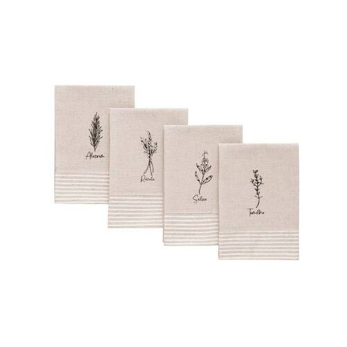 Guardanapo Copa E Cia 4 Peças Temperos Natural Guardanapo Copa e Cia 4 Peças Temperos Natural - Características Gerais do Produto: - Composição: 100% Algodão, Utilizando Fibras Diversas e Fio Reciclado. - Detalhes: Produto produzido no Brasil.; Kit Contém 04 peças.; Design Exclusivo Copa&Cia.; As cores podem sofrer pequenas alterações de cor, variando de monitor para monitor.; Os objetos que ambientam as fotos não acompanham o produto.; As fotos produzidas são apenas como sugestão de uso com as demais peças da coleção. - Cuidados: Não recomendado limpar a seco.; Passar à ferro até 110C.; Lavar à temperatura normal máxima de 30C.; Secagem em tambor é possível a baixa temperatura.; Evitar contato com objetos cortantes ou superaquecidos.; Não utilizar solventes, abrasivos ou alvejantes. - Dimensões (cm): Comprimento: 45 cm; Largura: 45 cm Acompanha o produto: - 4 Peças de Guardanapo de Tecido Garantia: - 7 dias/30 dias contra defeito de fabricação