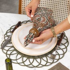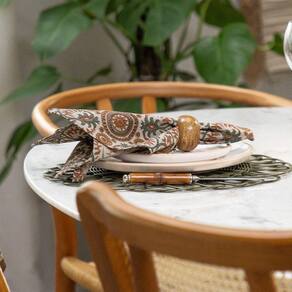 Guardanapo Copa E Cia Indian 4 Peças Neel Guardanapo Copa e Cia Indian 4 Peças Neel - Características Gerais do Produto: - Composição: 100% Algodão. - Detalhes: Kit Contém 04 peças.; Design Exclusivo Copa&Cia.; Produzido na Índia.; As cores podem sofrer pequenas alterações de cor, variando de monitor para monitor.; Os objetos que ambientam as fotos não acompanham o produto.; As fotos produzidas são apenas como sugestão de uso com as demais peças da coleção.; Estampa feita em processo artesanal com técnica indiana. - Cuidados: Não Deixar de Molho.; Passar à ferro até 110C.; Lavar à temperatura normal máxima de 30C.; Secagem em tambor é possível a baixa temperatura.; Evitar contato com objetos cortantes ou superaquecidos.; Não utilizar solventes, abrasivos ou alvejantes.; Não secar ao sol. - Dimensões (cm): Comprimento: 50 cm; Largura: 50 cm Acompanha o produto: - 4 Peças de Guardanapo de Tecido Garantia: - 7 dias/30 dias contra defeito de fabricação