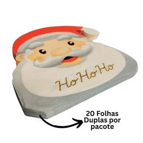 Guardanapo de Papel Natalino Rosto Papai Noel "Ho Ho Ho" – Branco e Vermelho | 20 Folhas Duplas