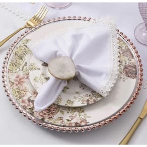 Conquiste os seus convidados montando uma mesa posta com os guardanapos da linha Ísis da Copa & Cia. Os modelos são super sofisticados, e embora sejam produzidos com 100% algodão, eles tem aspecto de linho. Esse modelo ainda conta com as bordas em renda. Perfeitos e super harmônicos.