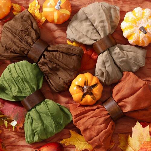- Incluído na embalagem: Conjunto de 20 guardanapos de pano de queijo de ação de graças de cores mistas com textura enrugada, que são guardanapos de terracota * 5, nus * 5, guardanapos marrons * 5 e guardanapos verde-oliva* 5. Cada guardanapo rústico de gaze tem 53 cm x 53 cm.