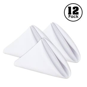 Gee Di Moda Guardanapos de pano - Guardanapos de jantar de poliéster laváveis brancos sólidos de 43 x 43 cm - Conjunto de 12 guardanapos com bordas de bainha - Ótimo para casamentos, festas, jantares de férias e muito mais