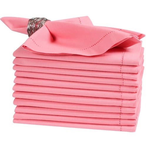 Guardanapos de coquetel com orifícios decorativos costurados na bainha em ourela — cravo-da-índia de 18 x 18" (rosa claro), guardanapos de casamento, guardanapos de tecido, guardanapos de algodão com cantos esquadrados, guardanapos de jantar laváveis à máquina, conjunto de 12
