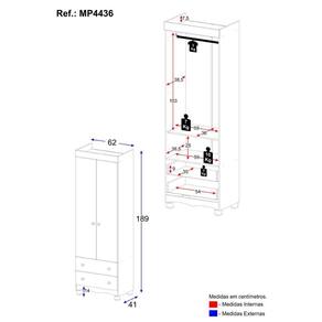 Dimensões do Produto Montado: Altura: 189cm | Largura: 62cm | Profundidade: 41cm Altura dos Pés: 5,8cm *Você pode consultar as medidas detalhadas na imagem técnica do produto.