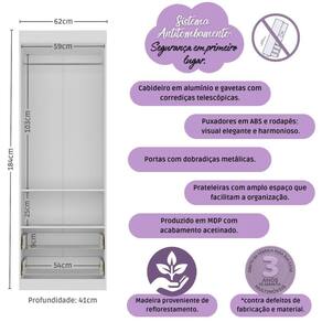 Dimensões do Produto Montado: Altura: 184cm | Largura: 62cm | Profundidade: 41cm *Você pode consultar as medidas detalhadas na imagem técnica do produto.