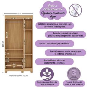 Dimensões do Produto Montado: Altura: 189cm | Largura: 92cm | Profundidade: 41cm Altura dos Pés: 5,8cm *Você pode consultar as medidas detalhadas na imagem técnica do produto.