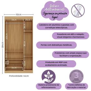 Dimensões do Produto Montado: Altura: 184cm | Largura: 92cm | Profundidade: 41cm *Você pode consultar as medidas detalhadas na imagem técnica do produto.