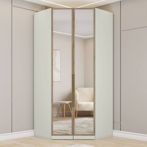 Guarrda-Roupa Solteiro Modulado Seletto 2 Portas com Espelho Areia/Jequitibá - Henn - Marrom